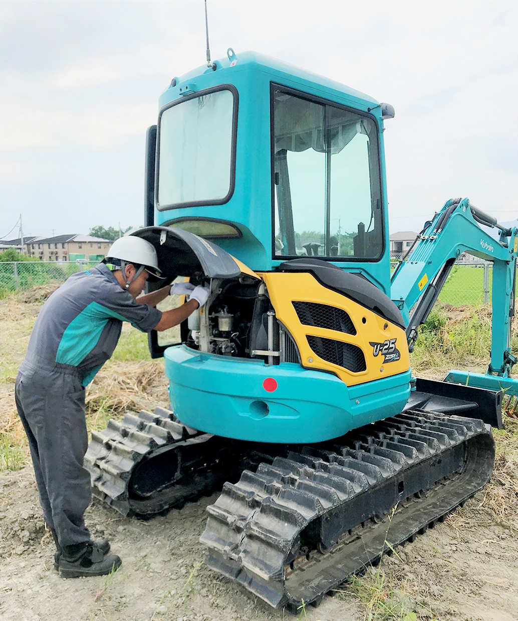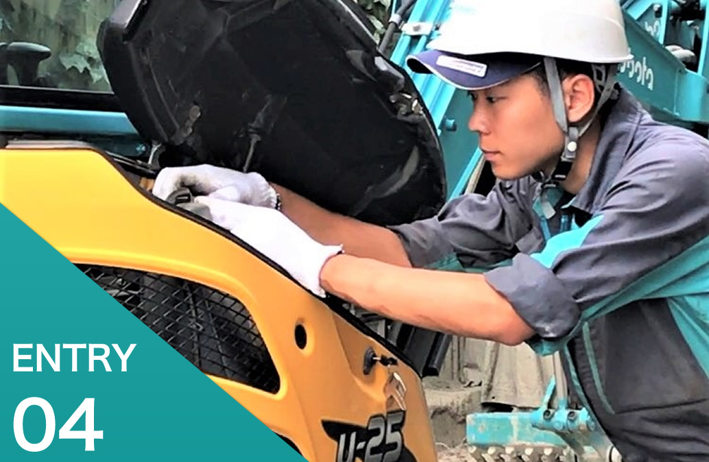 私の父親が建設機械整備をしており、幼い頃から業界に興味があり、待遇面やクボタグループへの印象からクボタ建機ジャパンへ入ることを決めました。高校を卒業後クボタ建機ジャパンへ入社しましたが、手厚い育成体制のもと、若手でも第一線で活躍することができ、更なるスキルアップを目指して日々努力しています。