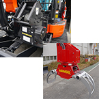 ホーム 関連商品 グラップル(林業用)+ウィンチ:ミニバックホー関連 ミニバックホー グラップル(林業用)+ウィンチ 南星機械 適合機種3t~6t 木材用グラップルバケットシリンダーによるチルト動作が可能。標準型から旋回協力型、電磁弁内蔵型まで豊富な機種を、準備しています。地引ウインチコンパクトに設計・簡単取付け。各機種ともオプションでラジコンを設定、ワンマン集材が可能です。 Webサイトへ イワフジ工業 適合機種3t~6t 現場で要求される様々な作業を考慮した頑強な構造です。開閉スピードが速く作業能率が向上します。 Webサイトへ